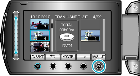 Berör ”KONTR.” för att markera den valda videon.