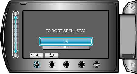 Alla spellistor raderas om du väljer ”DELETE ALL”.