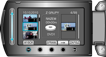 Dotknij „SPRAW.”, aby zaznaczyć wybrany film.