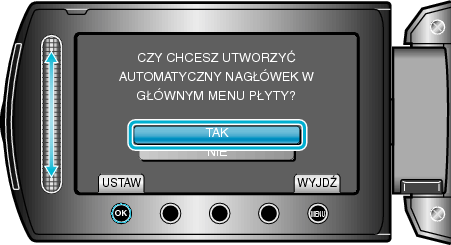 Wybierz TAK lub NIE i dotknij