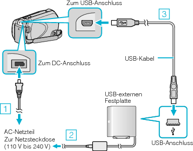 Kopieren> Benutzung eines externen USB-Festplattenlaufwerks (GZ-HD620)> Vorbereiten eines externen USB-Festplattenlaufwerks