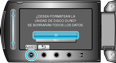 Seleccione “FORMATEAR DISCO DURO” y presione OK .