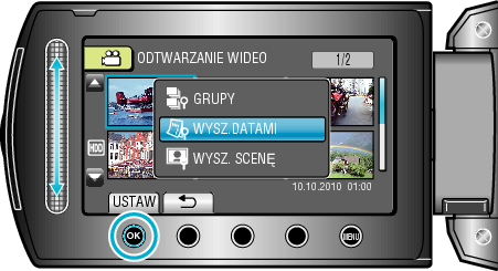 Menu wyszukiwania można również wyświetlić po wybraniu „WYSZUKAJ”, w menu odtwarzania. W przypadku zdjęć, wybierz w menu „WYSZ.DATAMI”.