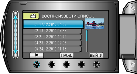 Для проверки содержимого выбранного списка воспроизведения нажмите „ПРОВ.“.