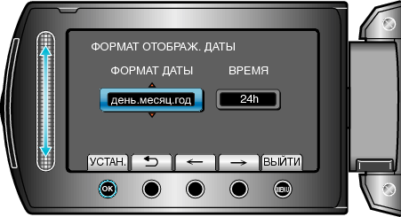 Выберите „ФОРМАТ ОТОБРАЖ. ДАТЫ“ и нажмите
