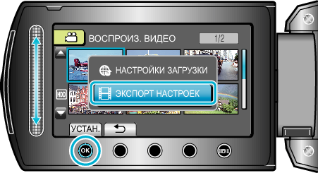 Выберите „ЭКСПОРТ НАСТРОЕК“ и нажмите кнопку