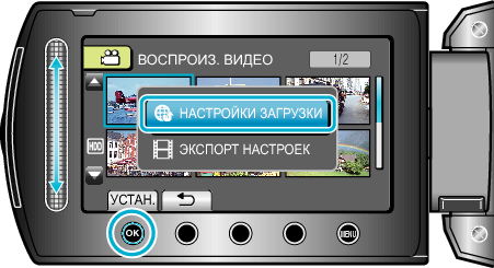 Нажмите кнопку UPLOAD/EXPORT, чтобы отобразить меню „НАСТРОЙКИ ЗАГРУЗКИ“/ „ЭКСПОРТ НАСТРОЕК“.