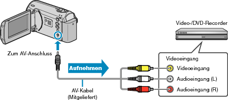 Anschluss und Überspielen muss mit dem mitgelieferten AV-Kabel erfolgen.