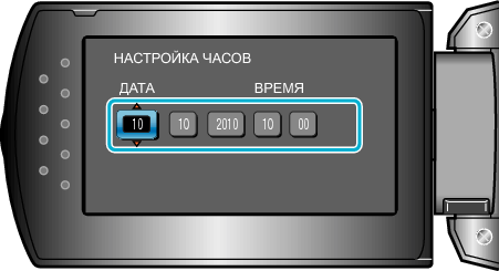 Используйте кнопку +/-, чтобы откорректировать год, месяц, число, часы и минуты.