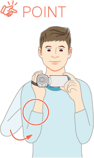 Lorsque vous tenez l’appareil, gardez vos coudes près de vous pour éviter que la caméra ne bouge.