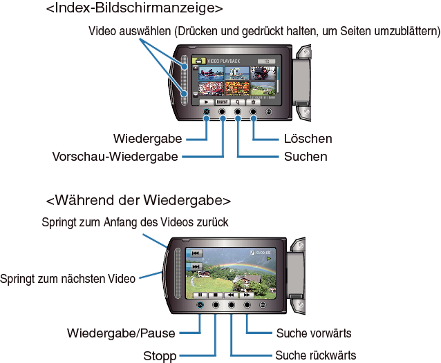 Sie können die aufgenommenen Videos oder Standbilder aus dem Index (Minibild-Anzeige) auswählen und wiedergeben.