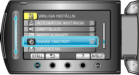 Välj ”SNABB OMSTART” och berör