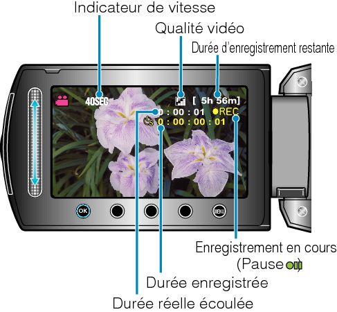 Affiche la durée réelle écoulée depuis le début de l’enregistrement. |