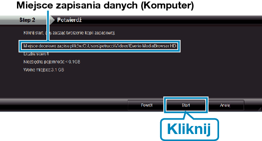 Przed utworzeniem kopii zapasowych upewnij się, czy na dysku twardym komputera (HDD) jest wystarczająca ilość miejsca.