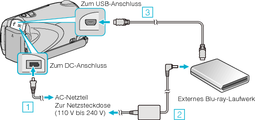 Kopieren> Erstellen von Discs mit einem DVD-Recorder oder einem externen Blu-ray-Laufwerk> Vorbereiten eines externen Blu-ray-Laufwerks
