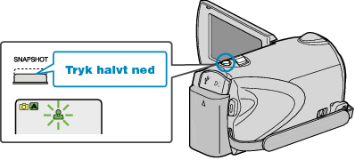 - Optagelampen lyser, mens der optages stillbilleder. Fjern ikke batteripakken, lysnetadapteren eller SD-kort, når lampen lyser.