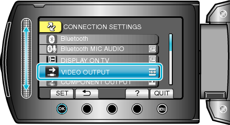 Valitse ”VIDEO OUTPUT” ja kosketa OK .