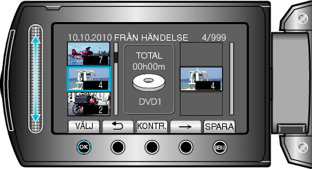 Berör ”KONTR.” för att markera den valda videon.