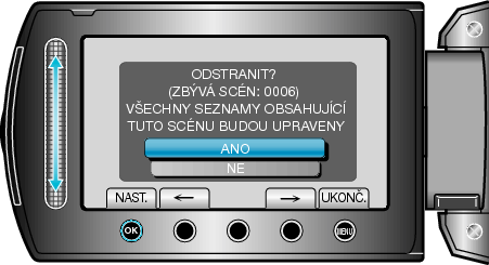 Ověřte, že se jedná skutečně o soubor, který chcete smazat, zvolte „ANO“ a stiskněte