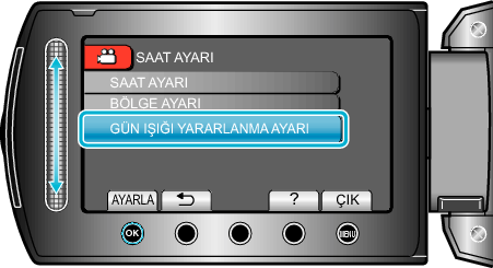 “SAAT AYARI„’nın “GÜN IŞIĞI YARARLANMA AYARI„ içinde “AÇIK„ seçildiğinde, zaman 1 saat ileriye ayarlanır.
