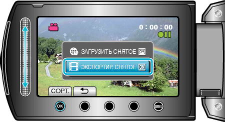 Выберите „ЭКСПОРТИР. СНЯТОЕ“ и нажмите кнопку
