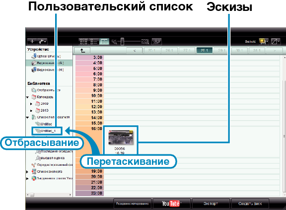 Отобразятся эскизы файлов, записанных в этот день.