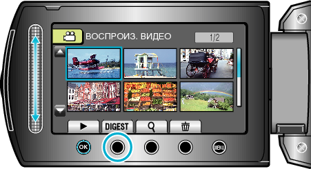 Вы можете воспроизвести обзор записанных видеофайлов (Обзорное воспроизведение).