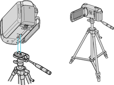 - Во избежание травм или повреждений в результате падения аппарат, внимательно ознакомьтесь с руководством по эксплуатации используемого штатива и убедитесь, что камера надежно прикреплена к нему.
