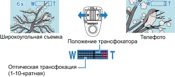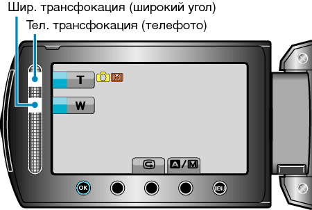Также можно использовать ползунок (Тел./Шир.) для осуществления трансфокации.