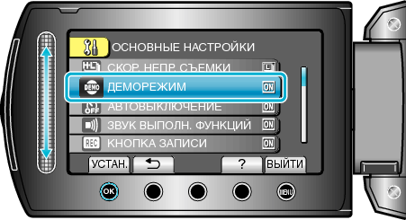 Начинает воспроизведение демонстрационного режима, представляющего все функции этой аппарат.
