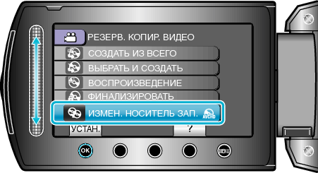 Копирование> Создание дисков на записывающем устройстве DVD или внешнем дисководе Blu-ray> Изменение носителя записи (только режим видео)
