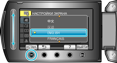 Выберите „НАСТРОЙКИ ЭКРАНА“ и нажмите