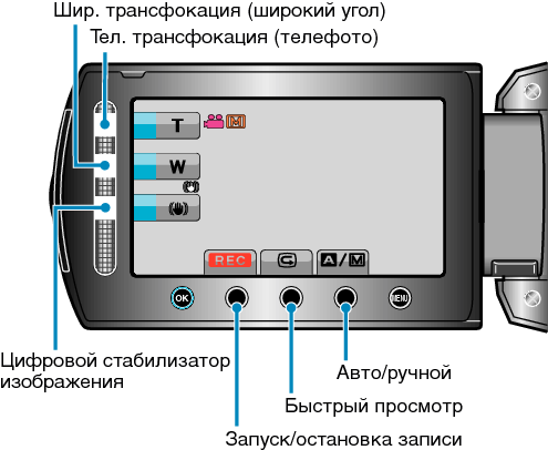 Переключает режим записи с автоматического на ручной и наоборот. |