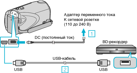 Вы можете создавать диски путем подключения аппарата к рекордеру Blu-ray с помощью USB-кабеля.