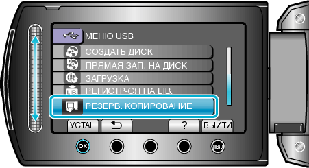 Выберите „РЕЗЕРВ. КОПИРОВАНИЕ“ и нажмите