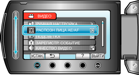 Выберите „РАСПОЗН ЛИЦА AE/AF“ и нажмите