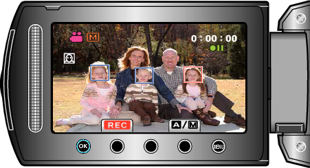 Запись> Четкое запечатление людей (Распознавание лиц AE/AF)
