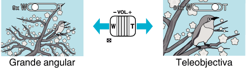 Utilize o lado T (teleobjectiva) para aumentar o alvo da filmagem.
