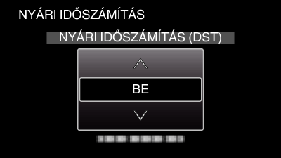 Ha a(z) „ÓRA BEÁLLÍTÁSA” elem „NYÁRI IDŐSZÁMÍTÁS” opciójánál a(z) „BE” beállítást alkalmazza, akkor azzal az időt egy órával előbbre állítja.