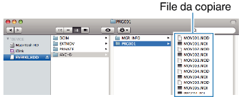 Copiare i file su un computer Mac utilizzando la seguente modalità.