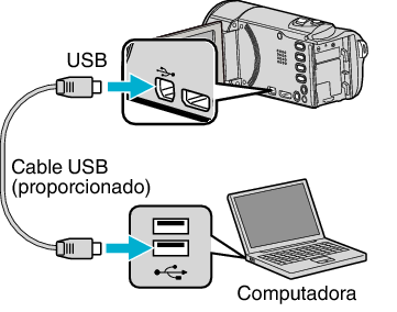 Encienda la computadora y conecte el cable USB a la videocámara.