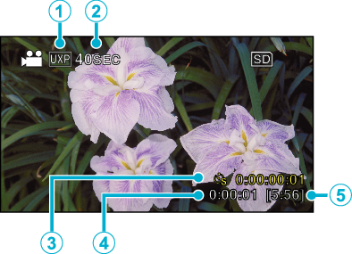 Отображает фактическое время записи видео. Единицей увеличения времени записи является кадр. |