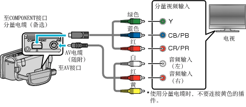 您可以将本机与电视机的分量接口连接,以便按模拟高清画质播放视频。