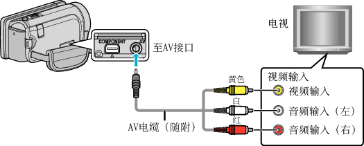 用随附的AC电缆连接至AV接口,即可在电视机上播放视频。