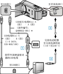 连接USB电缆和交流电适配器。