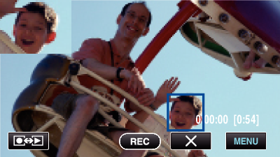 您可以一边观看总体的场景图像和放大的被摄体表情图像,一边录制。 方框出现在可以放大的脸部周围。 轻按方框,在子窗口中跟踪并放大脸部。