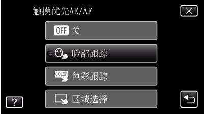 聚焦及亮度将依据轻按的位置自动调节(脸部/颜色/区域)。 蓝色方框出现在选定的被摄体周围(脸部/颜色),白色方框出现在选定的区域周围。