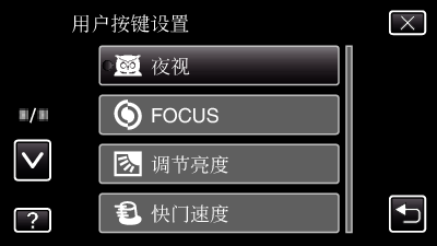 ( FOCUS, 调节亮度, 快门速度, 光圈优先)