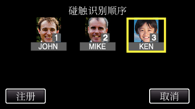 登记后,最后的数字被指定为优先程度。 在脸部检测过程中,将检测到优先程度最高(最底下的数字)的被摄体。