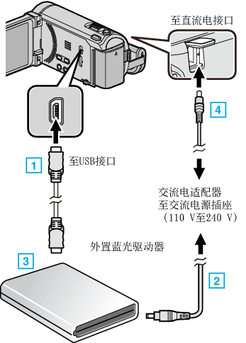 与外部蓝光驱动器连接时,使用带Mini-A(阳)– B(阳)接口的USB电缆。